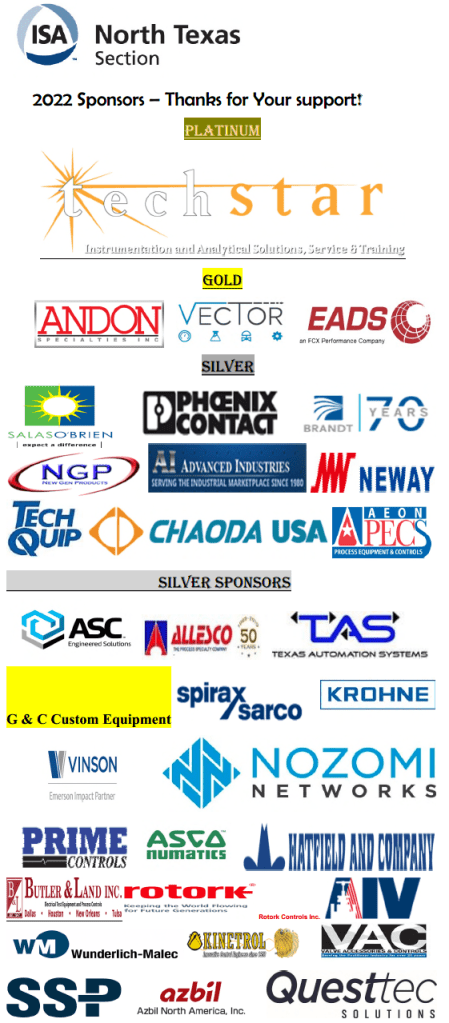 Thanks to all for helping the ISA North Texas Section field a nice turnout of right at 32 teams recently at our Annual Golf Scholarship Event on May 19! We had 128 instrument professionals at this year’s event at Texas Star, where we were blessed with a dry day, the weather was super and all seemed to enjoy their time, along with some good vittles and beverages.
